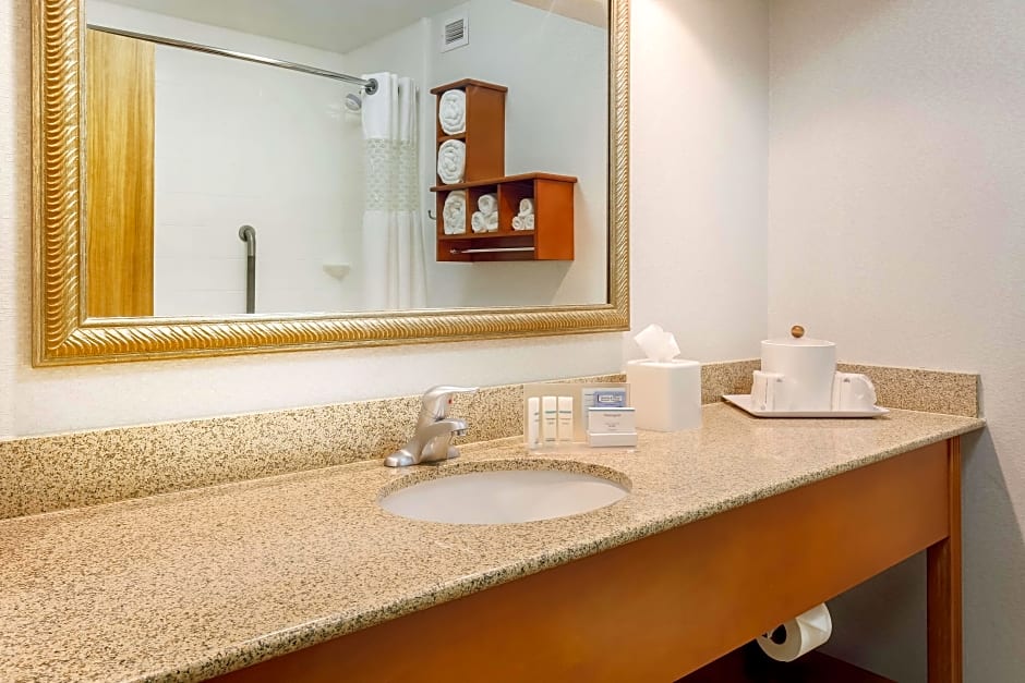 Wider doorways and a bathroom with grab bars are offered in this wheelchair accessible room.